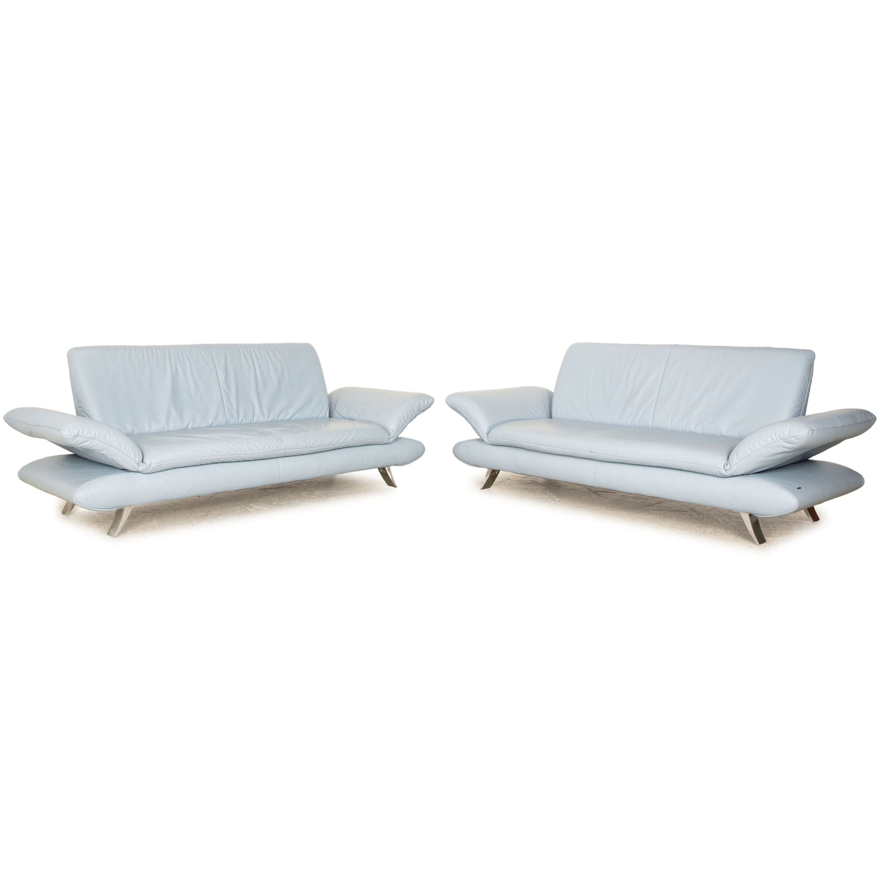 Koinor Rossini Leder Sofa Garnitur Hellblau Blau manuelle Funktion 2x Dreisitzer Couch