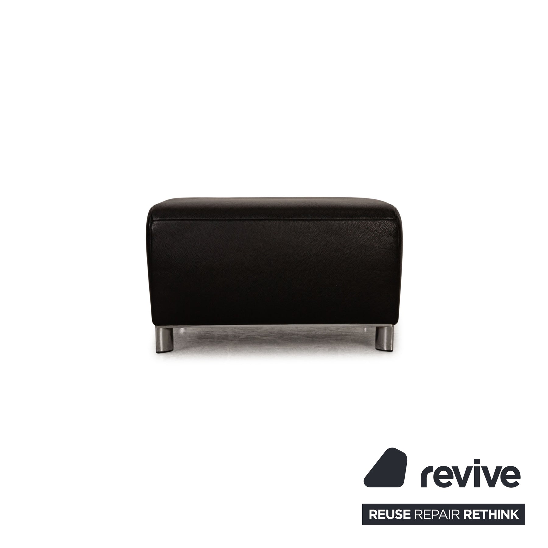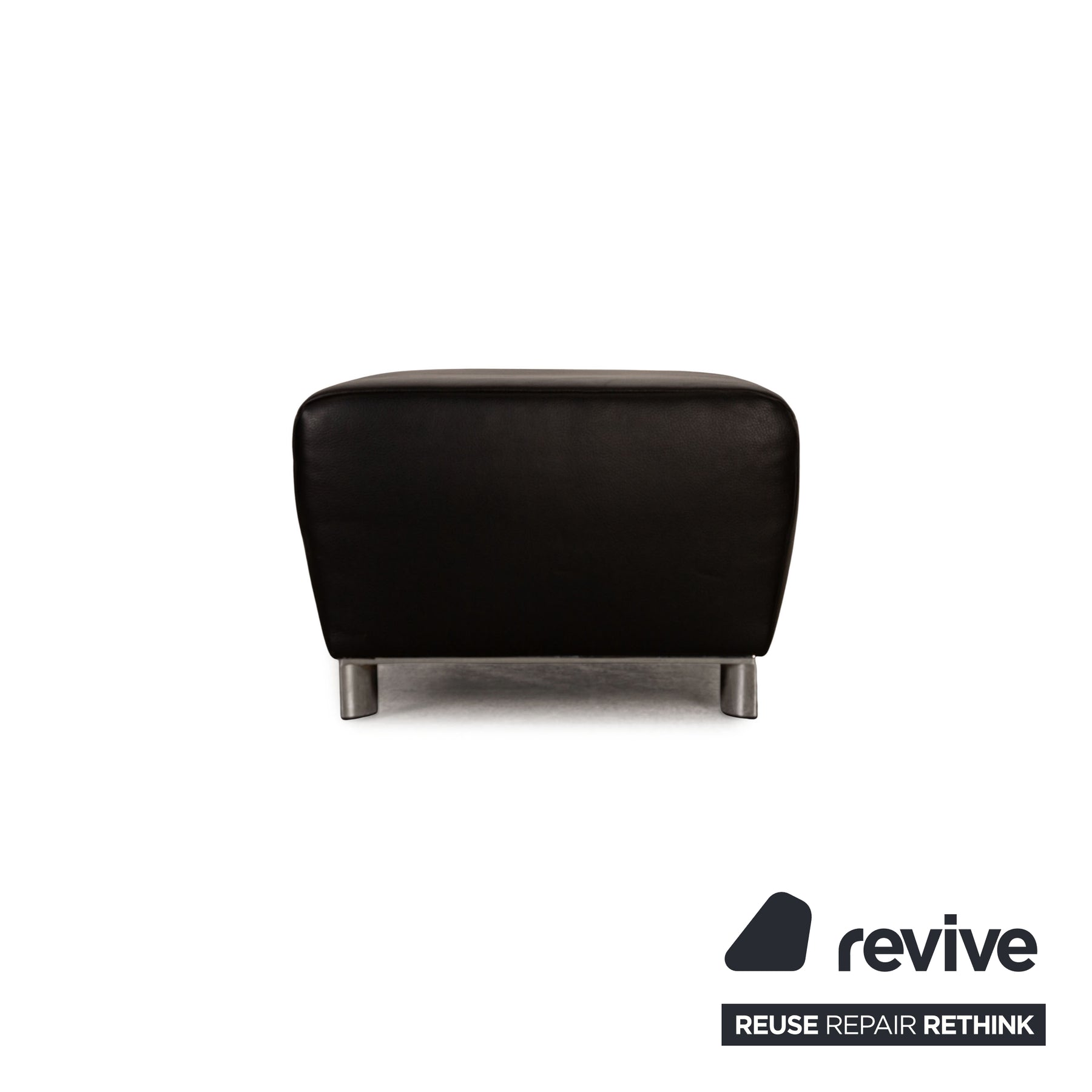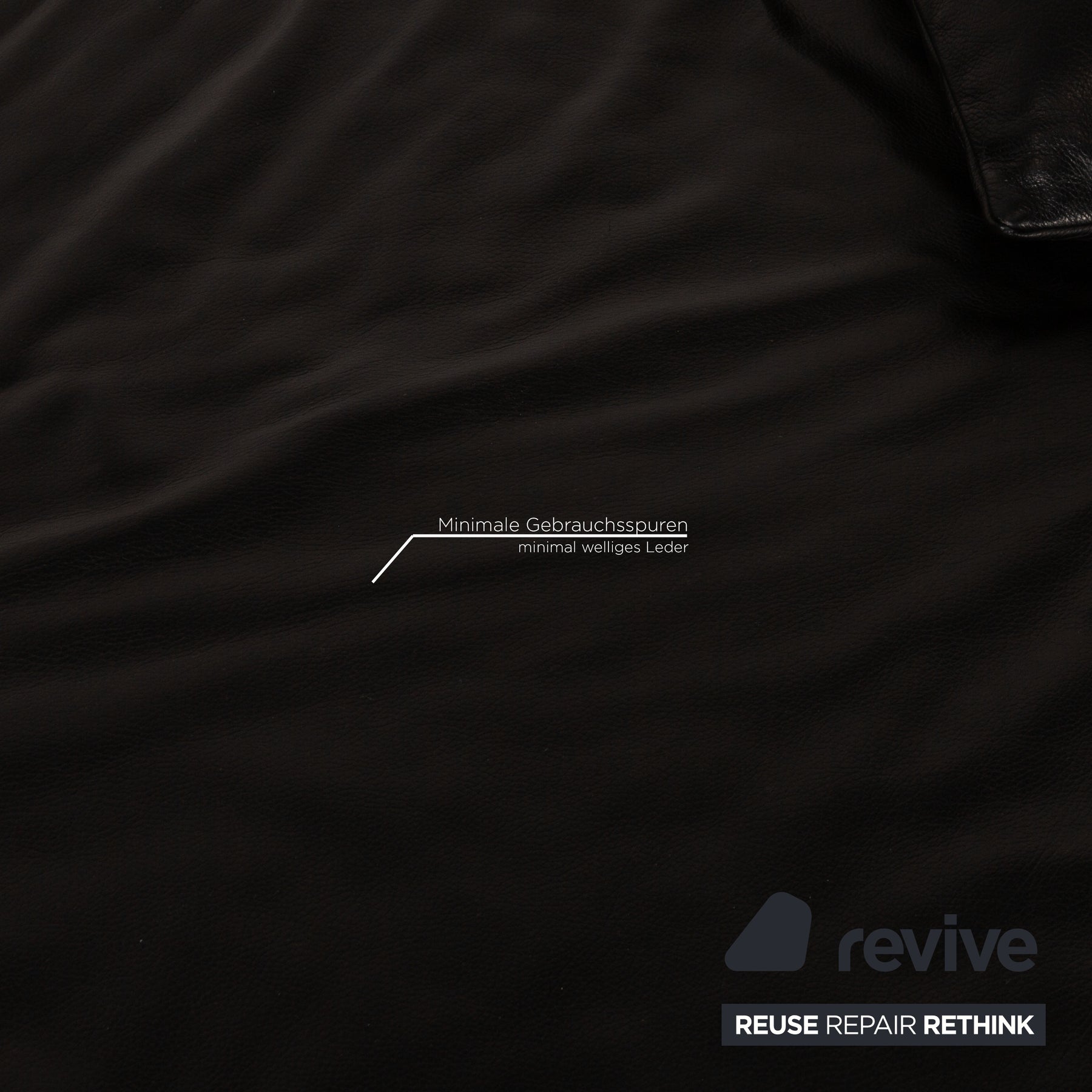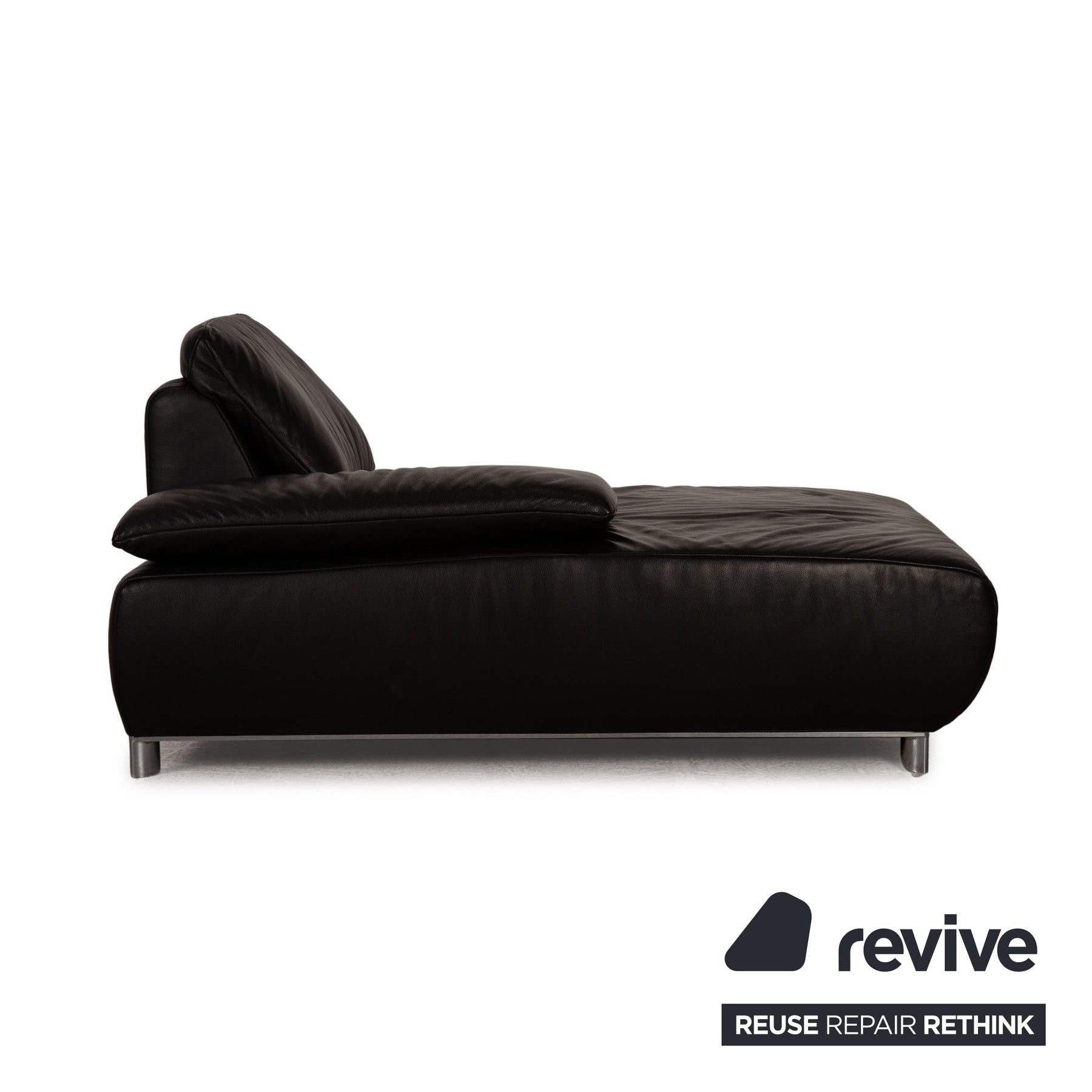 Die Garnitur Volare von Koinor ist mit einem schwarzen Echtleder bezogen und steht auf schmalen Metallfüßen. Sie zeichnet sich durch das schlichte, klassische Design und die zeitlose Optik aus. Sie besteht aus einer Liege und einem Hocker.