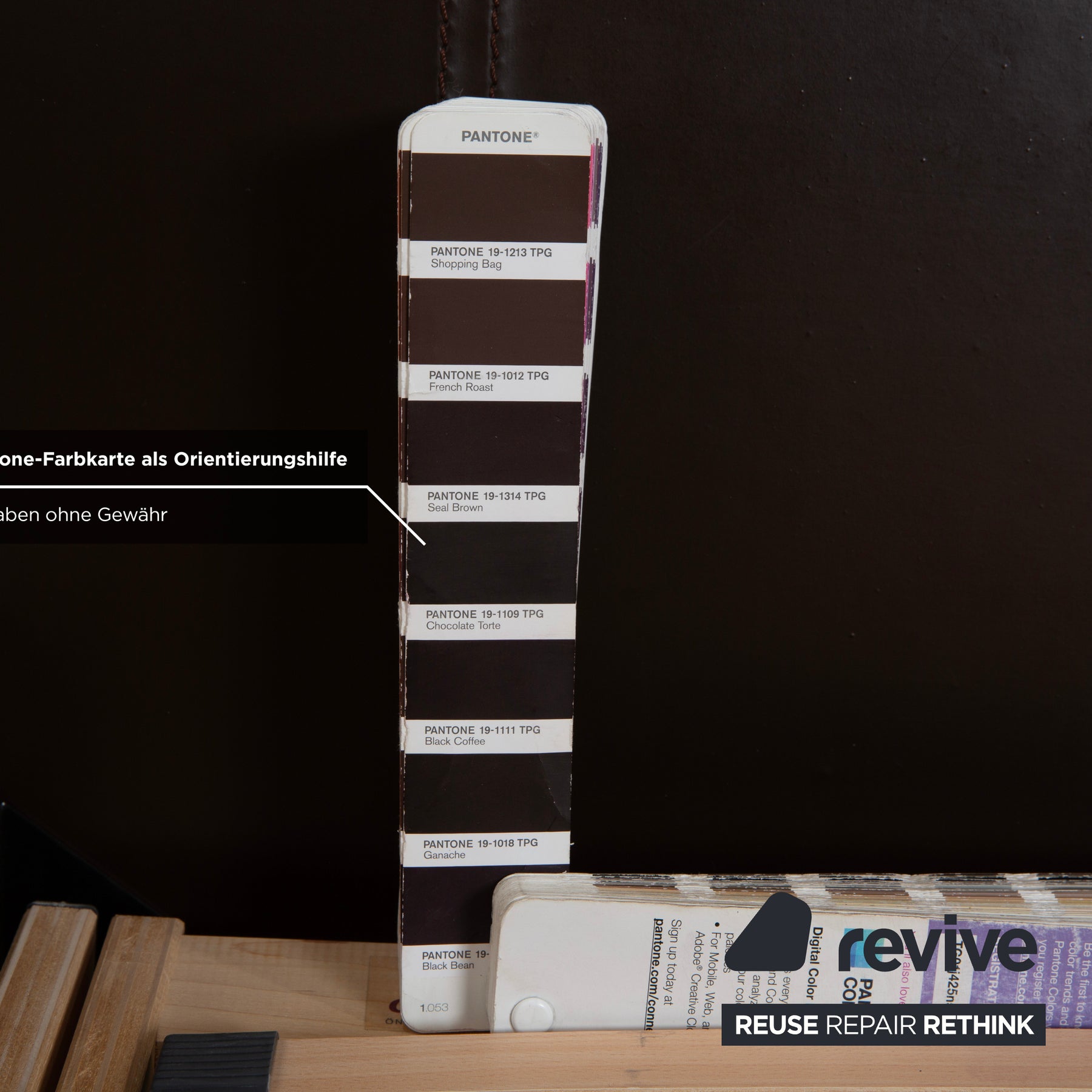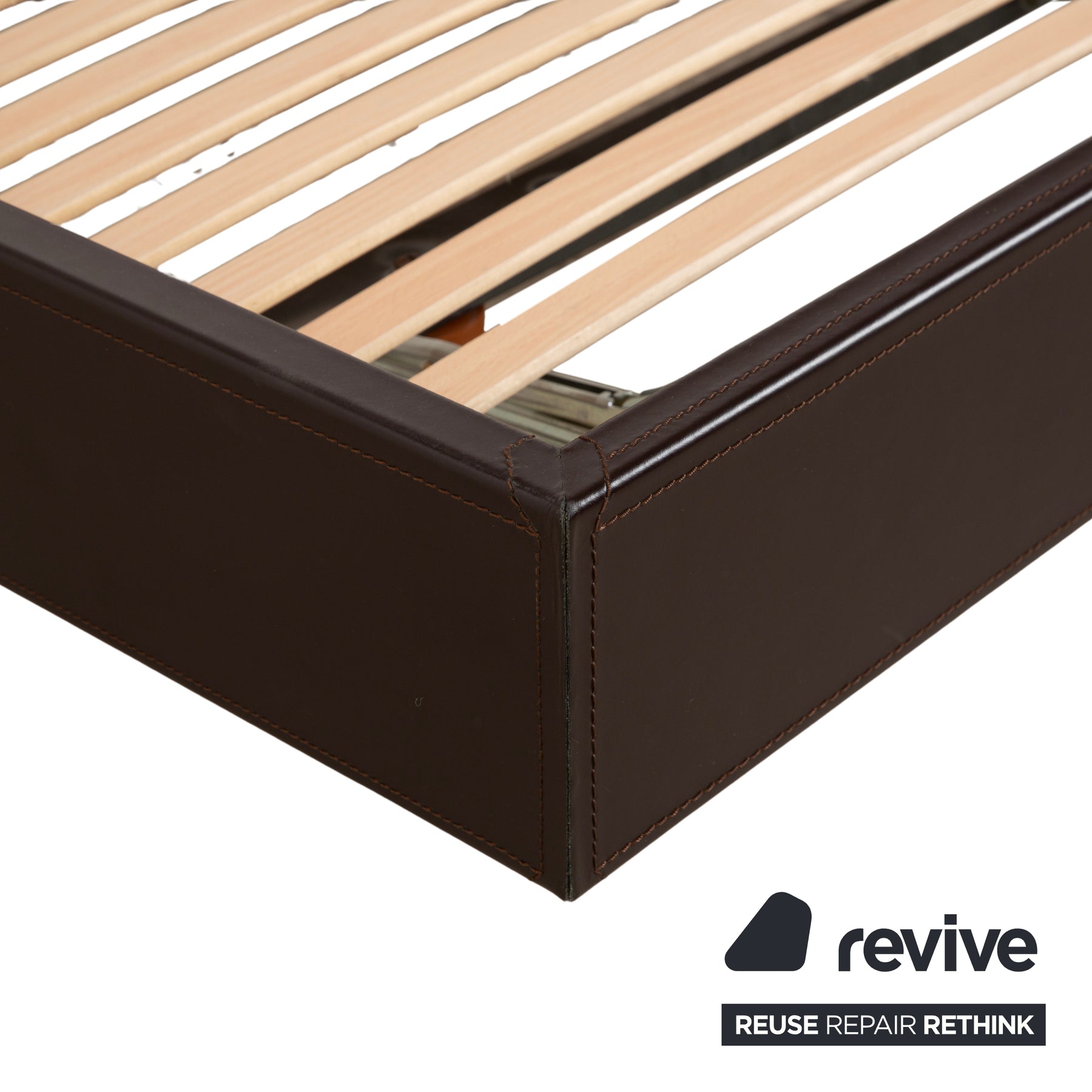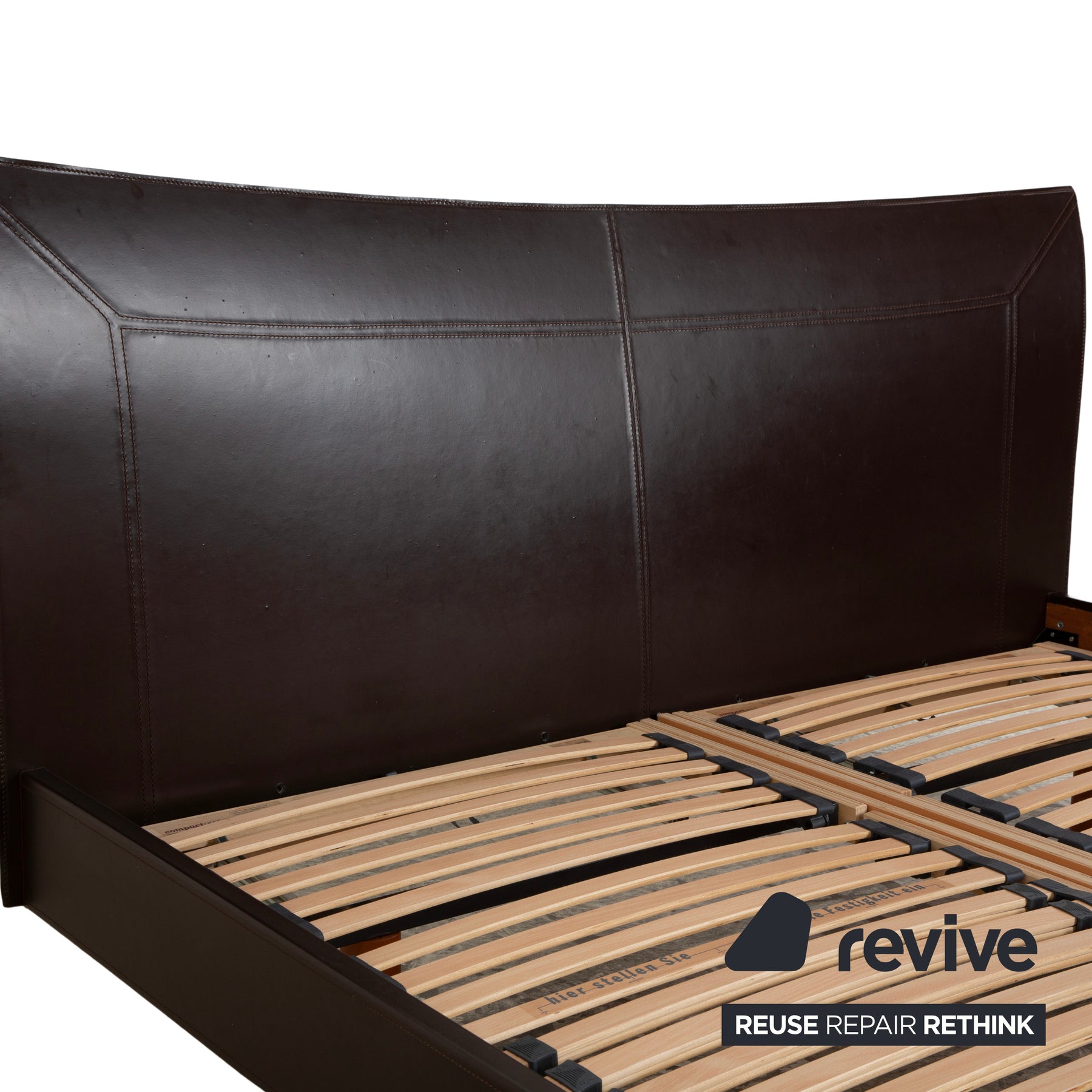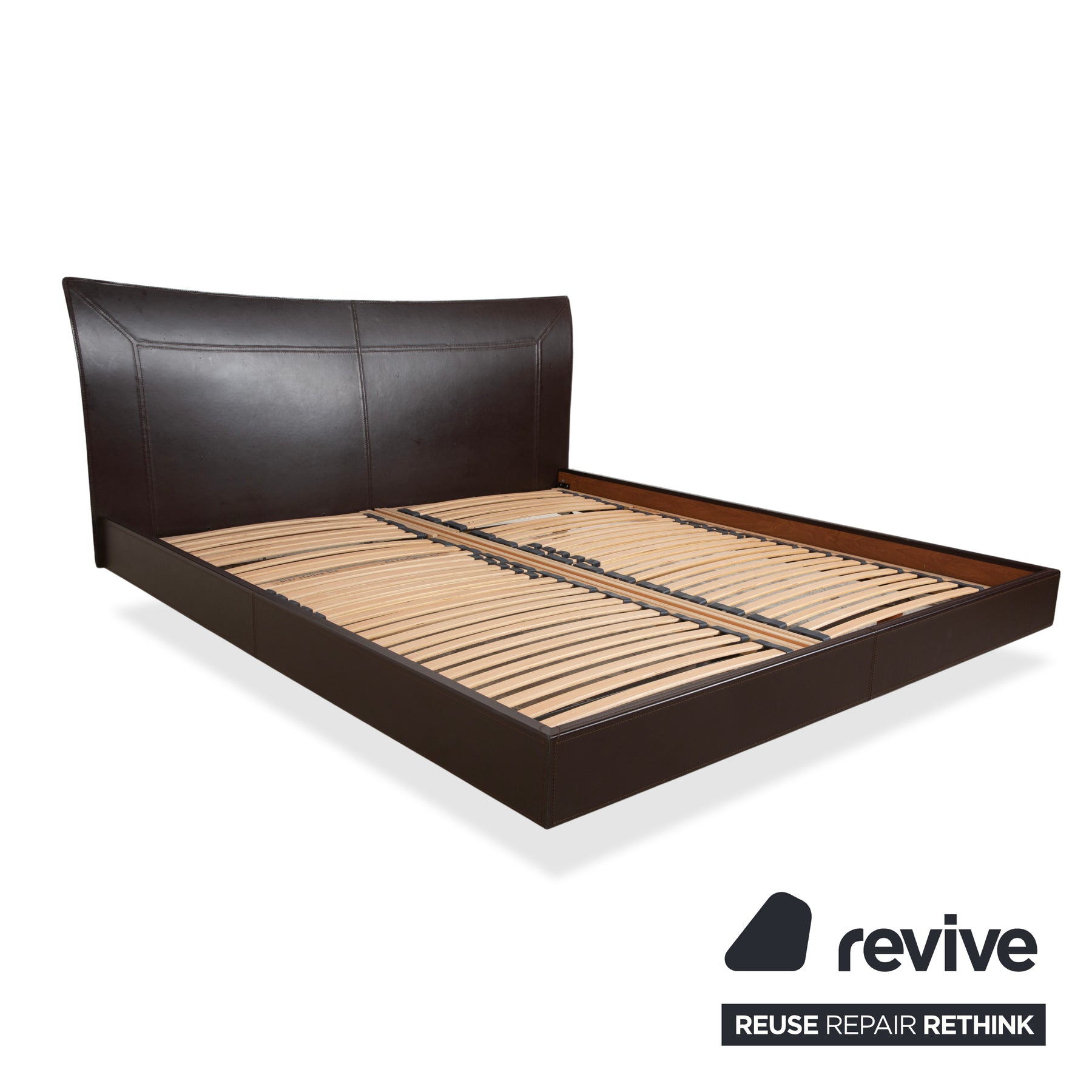 Dieses Bett von Ligne Roset bringt genau die unaufgeregte Eleganz in dein Schlafzimmer, die man von dem französischen Designhaus kennt. Es ist komplett in ein sattes, dunkelbraunes Leder gekleidet, das Wärme ausstrahlt und sich toll anfühlt. Der eigentliche Hingucker ist aber das Kopfteil: Mit seiner feinen geometrischen Nahtführung und den ganz leicht nach innen gewölbten Seiten wirkt es fast wie ein schützender Kragen – perfekt, um sich zum Lesen gemütlich anzulehnen, ohne dass es dich einengt.