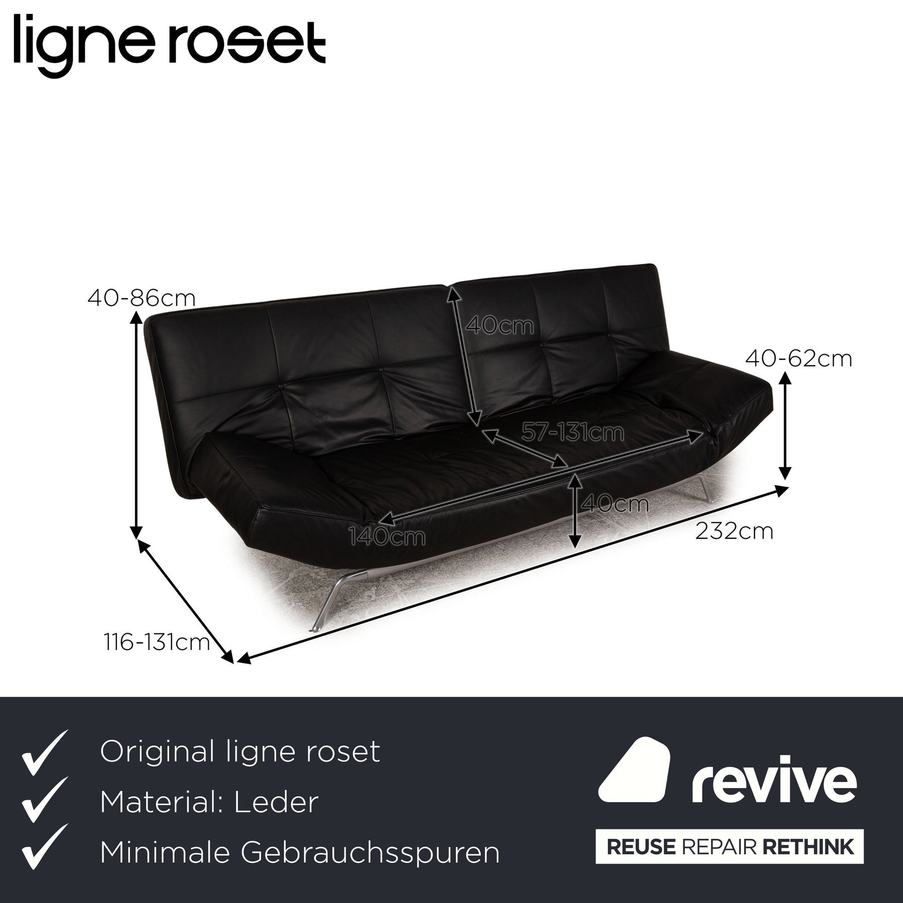 Ligne roset Smala Leder Dreisitzer Schwarz Funktion Sofa Couch