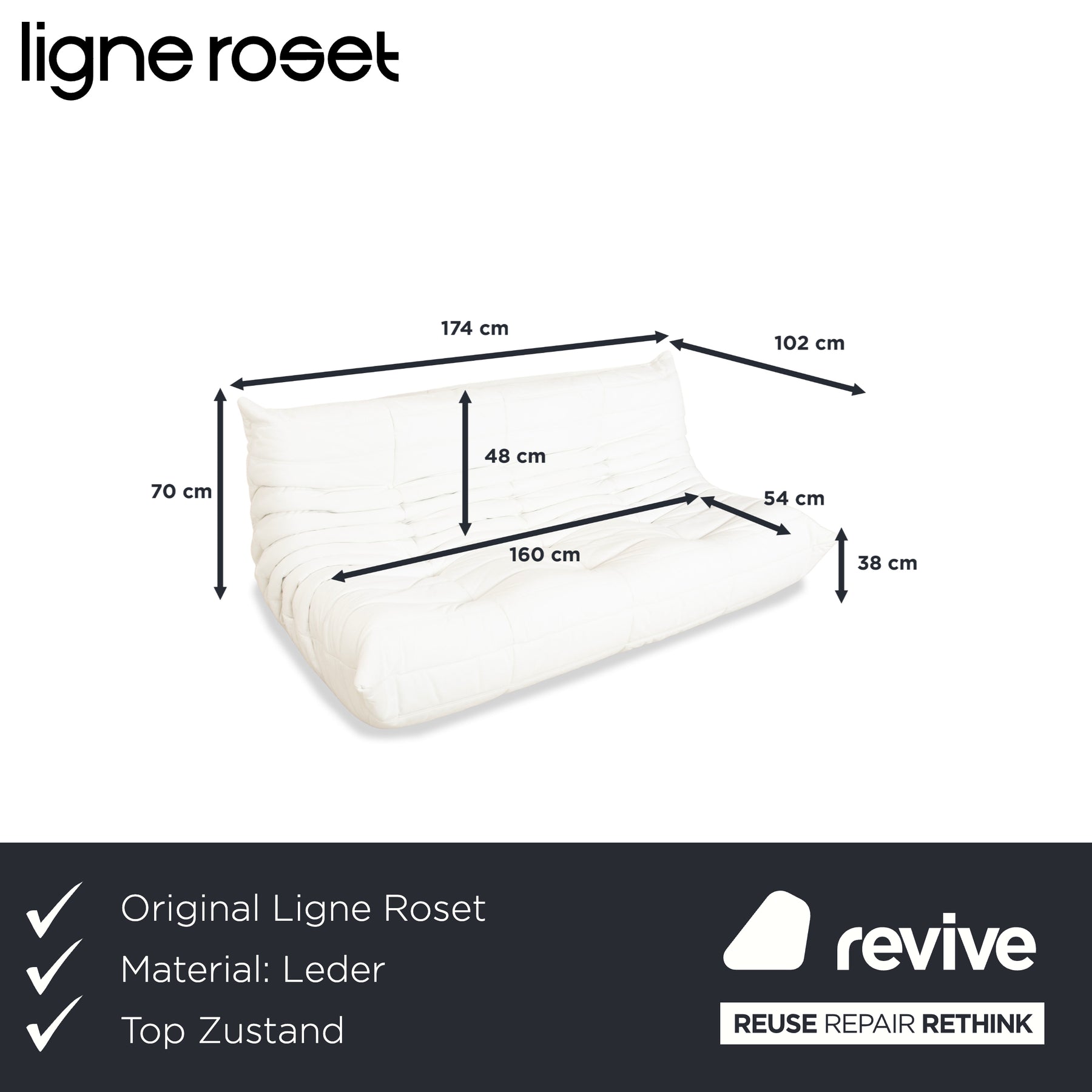 ligne roset Togo Leder Dreisitzer Weiß Sofa Couch