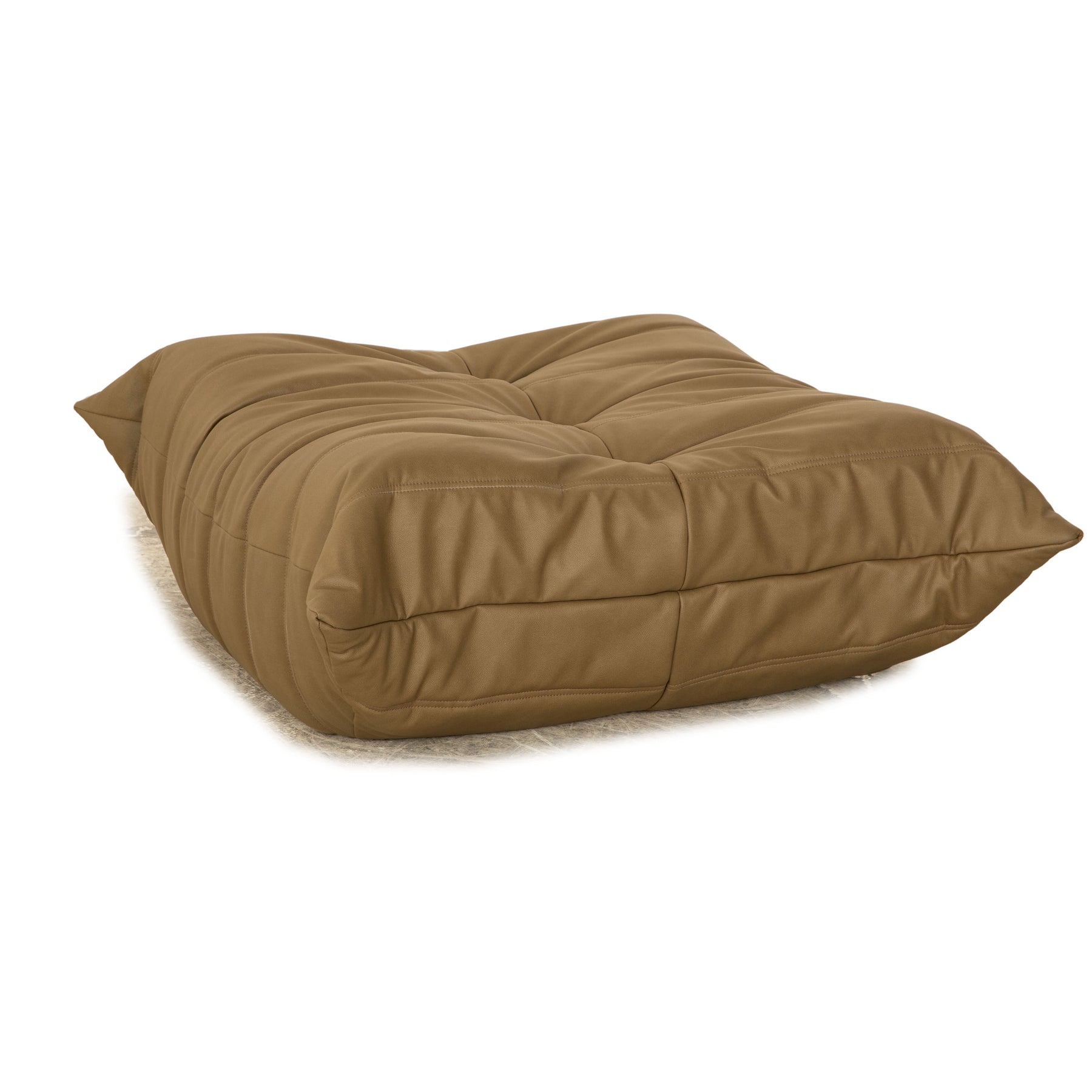ligne roset Togo veganes Leder Stoff Hocker Olivgrün Khaki Neubezug Mikrofaser