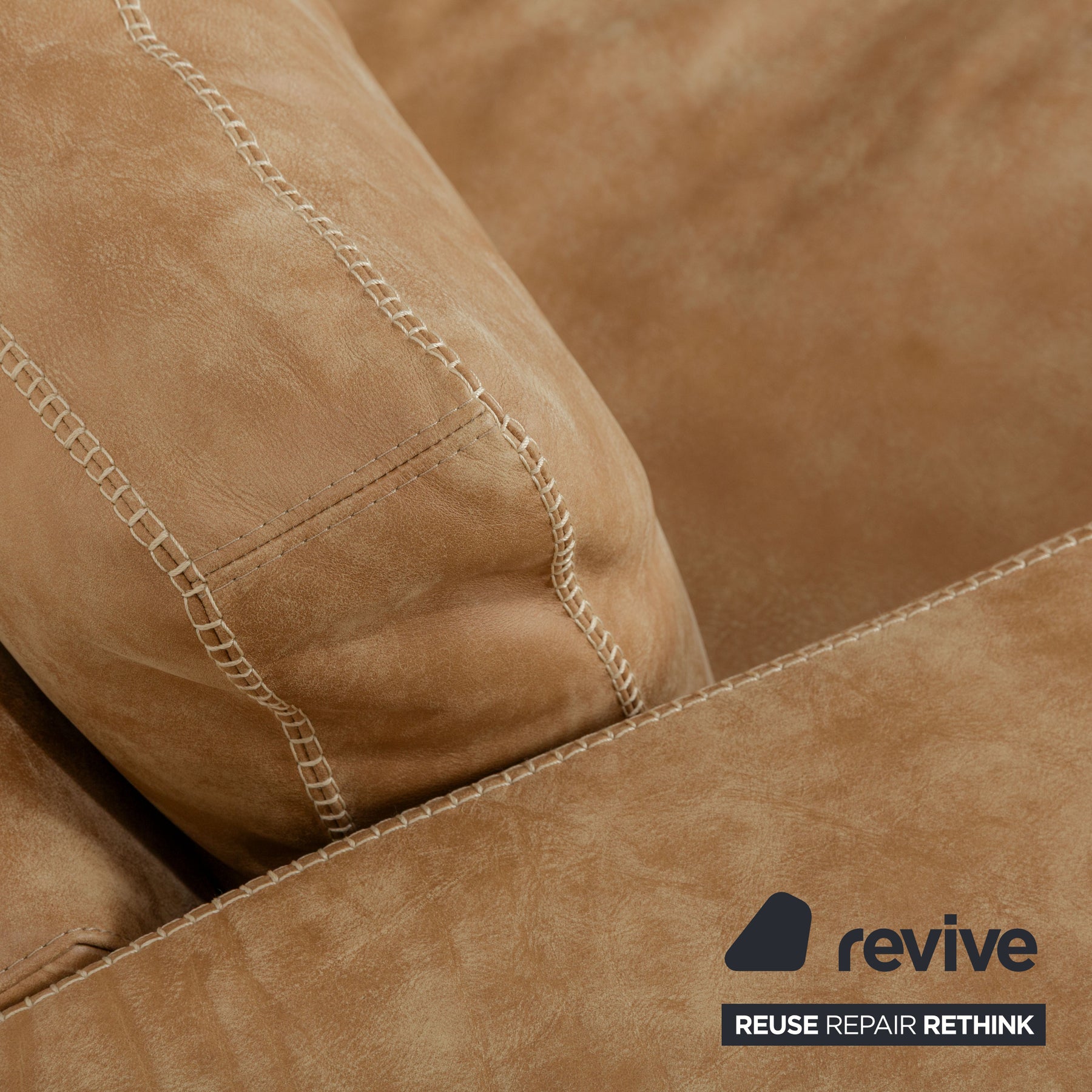 Der Valentino Sessel von Machalke ist mit einem beigefarbenen Echtleder bezogen und steht auf eckigen schwarzen Füßen. Das schlichte Design und die abgerundeten Kanten zeichnen ihn aus.