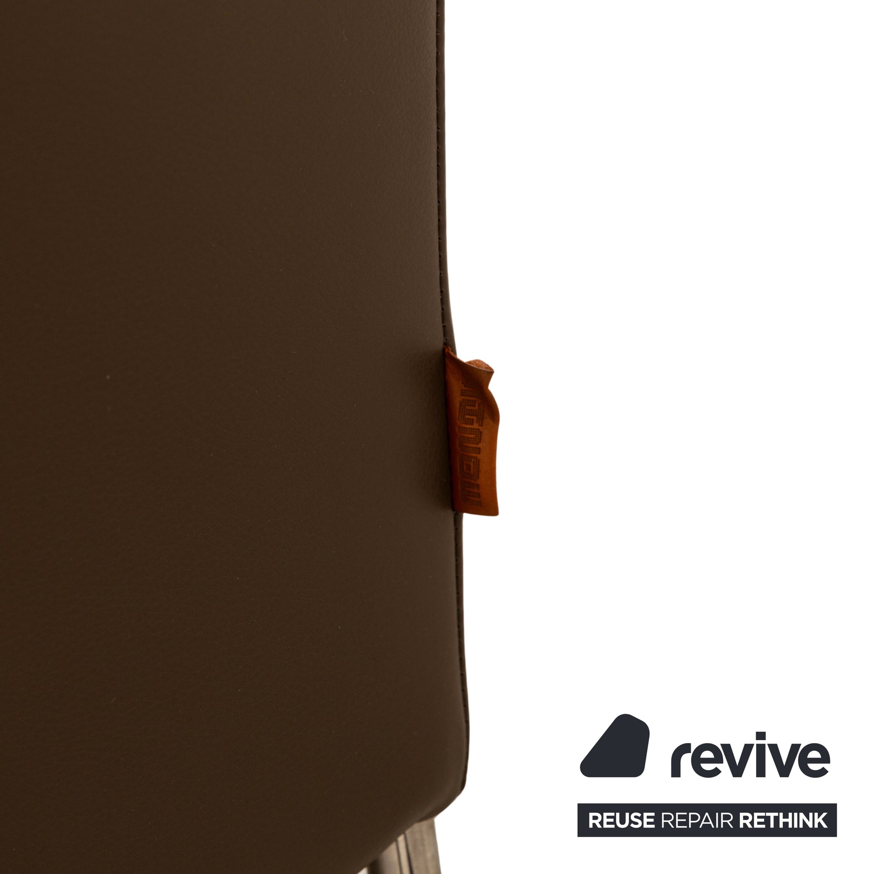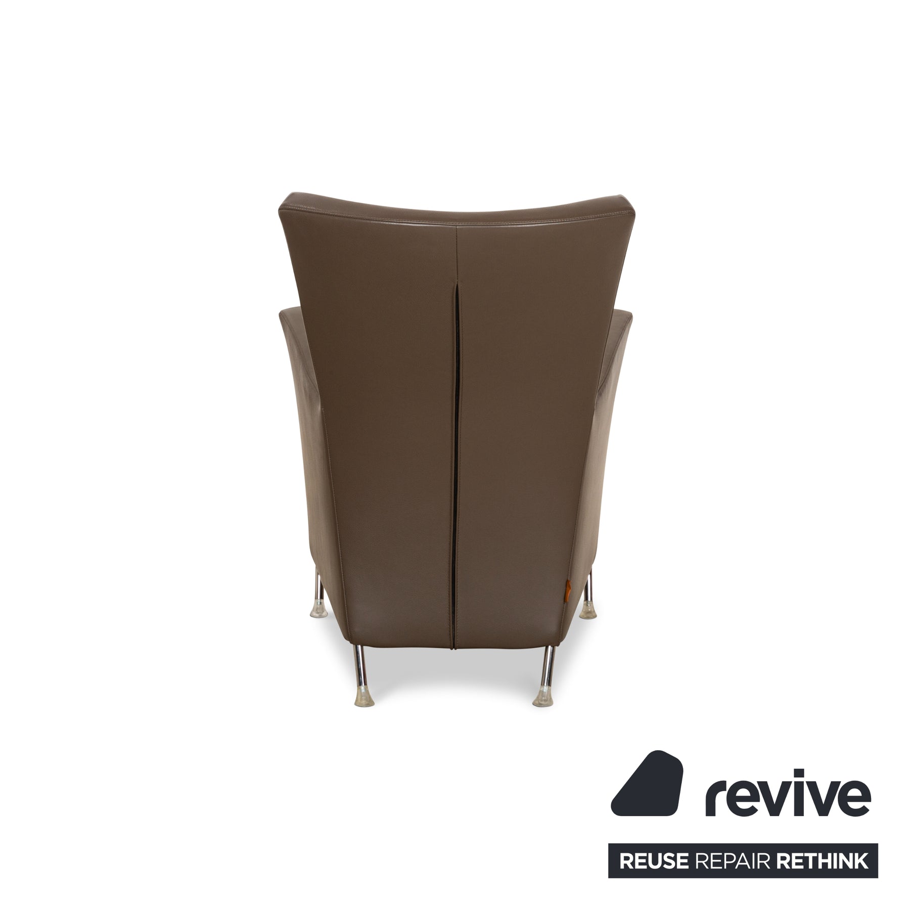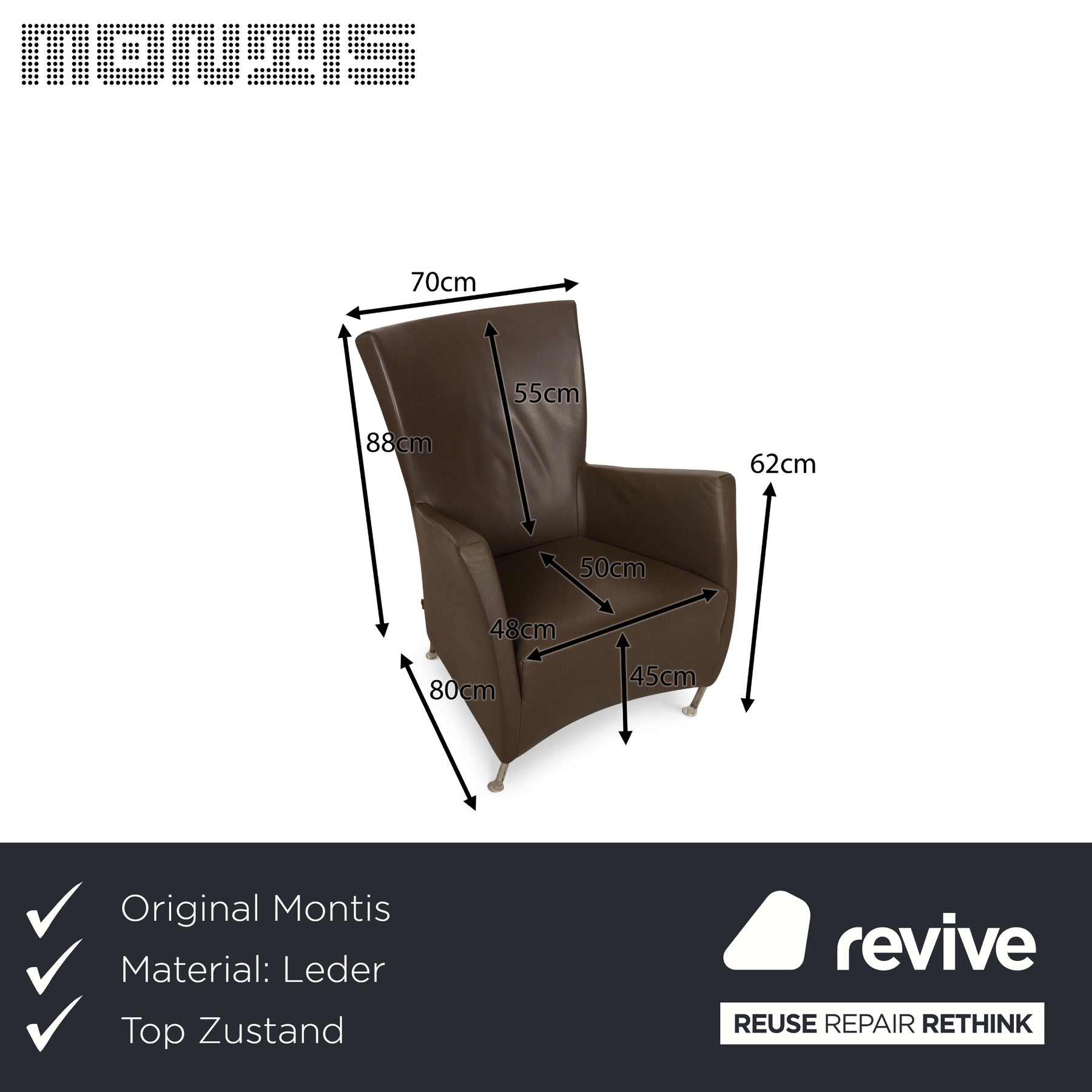 Der Sessel Windy von Montis macht seinem Namen alle Ehre. Das Grunddesign des Sessels schaut so aus, als wäre er vom Winde verweht worden. Die leichten Schwünge verleihen dem Möbel etwas Luftiges und Leichtes. Der Sessel ist mit braunem Echtleder bezogen und steht auf schmalen Metallfüßen.