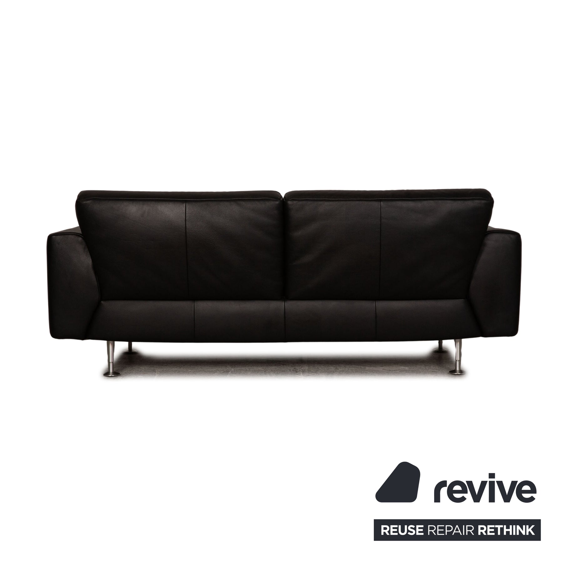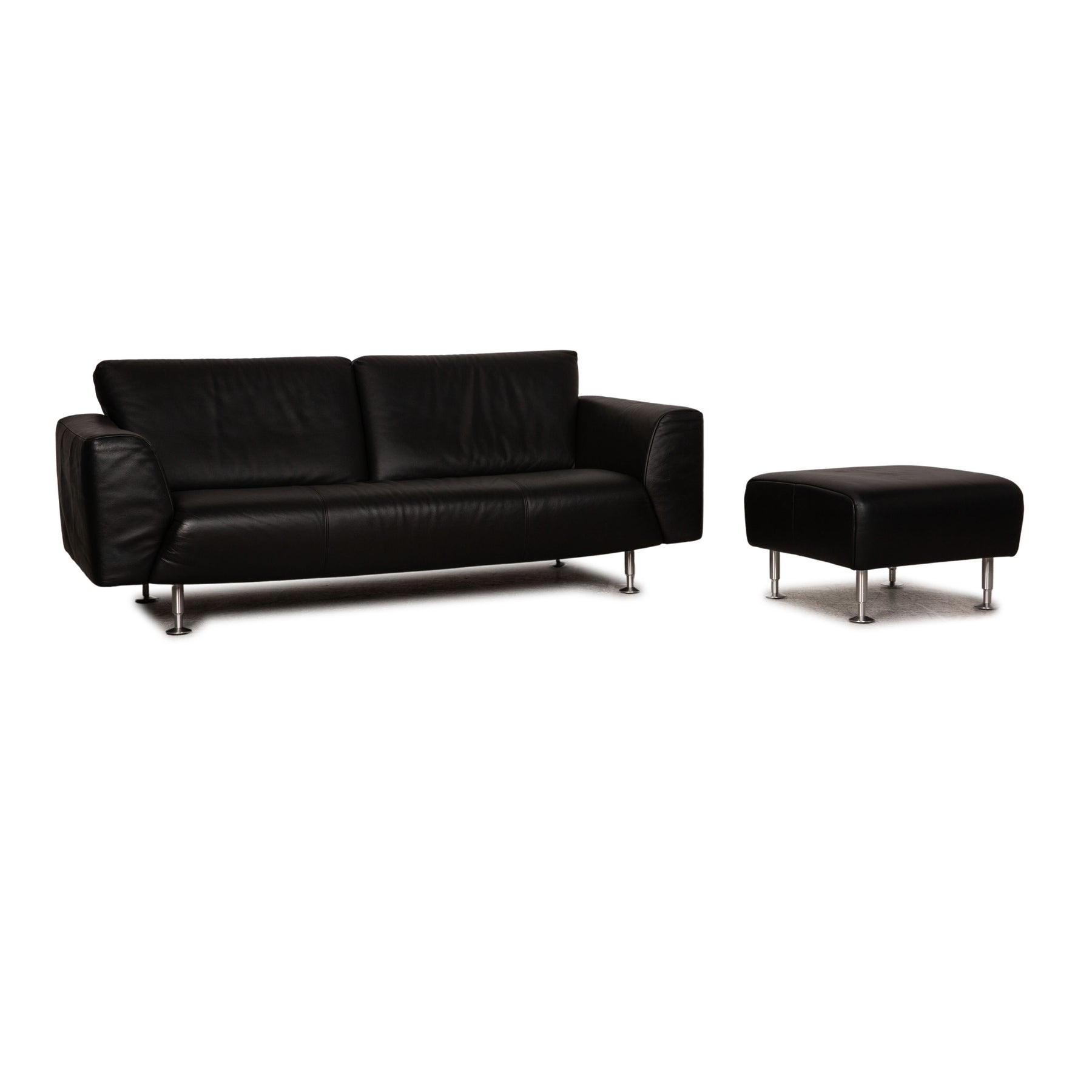 Rolf Benz 250 Leder Sofa Garnitur Schwarz Dreisitzer Hocker Couch