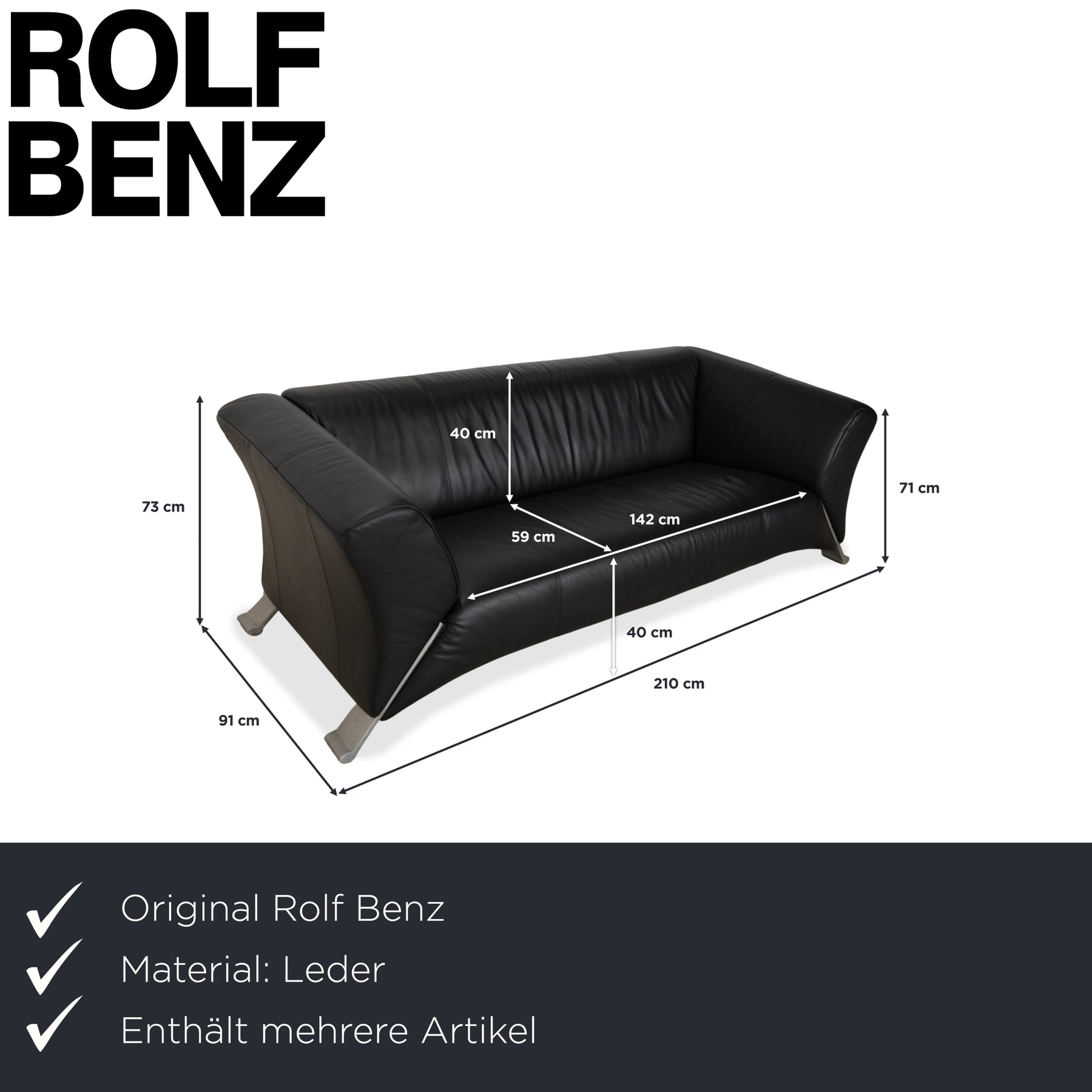 Rolf Benz 322 Leder 2x Dreisitzer Sessel Hocker Schwarz Sofa Couch
