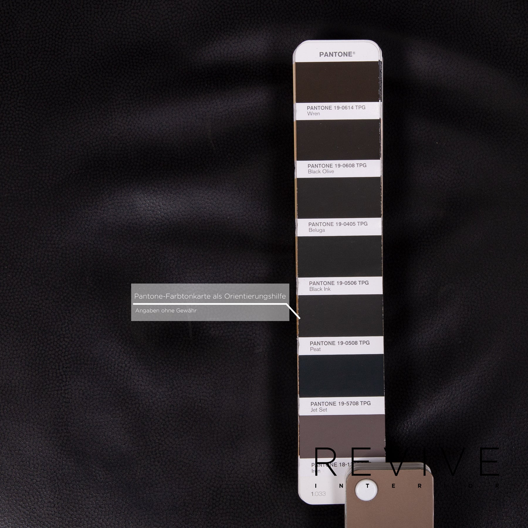 Der Sessel Rolf Benz 322, bezogen mit anthrazitfarbenen Echtleder, ist ein Klassiker, bei dem der kompakte Korpus auf eine weiche Linienführung trifft. Die schräg gestellten Aluminiumfüße und die nach außen geschwungenen Lehnen sorgen für Dynamik. Der mittelfeste Sitzkomfort sorgt für Stabilität und Entspannung gleichermaßen.
