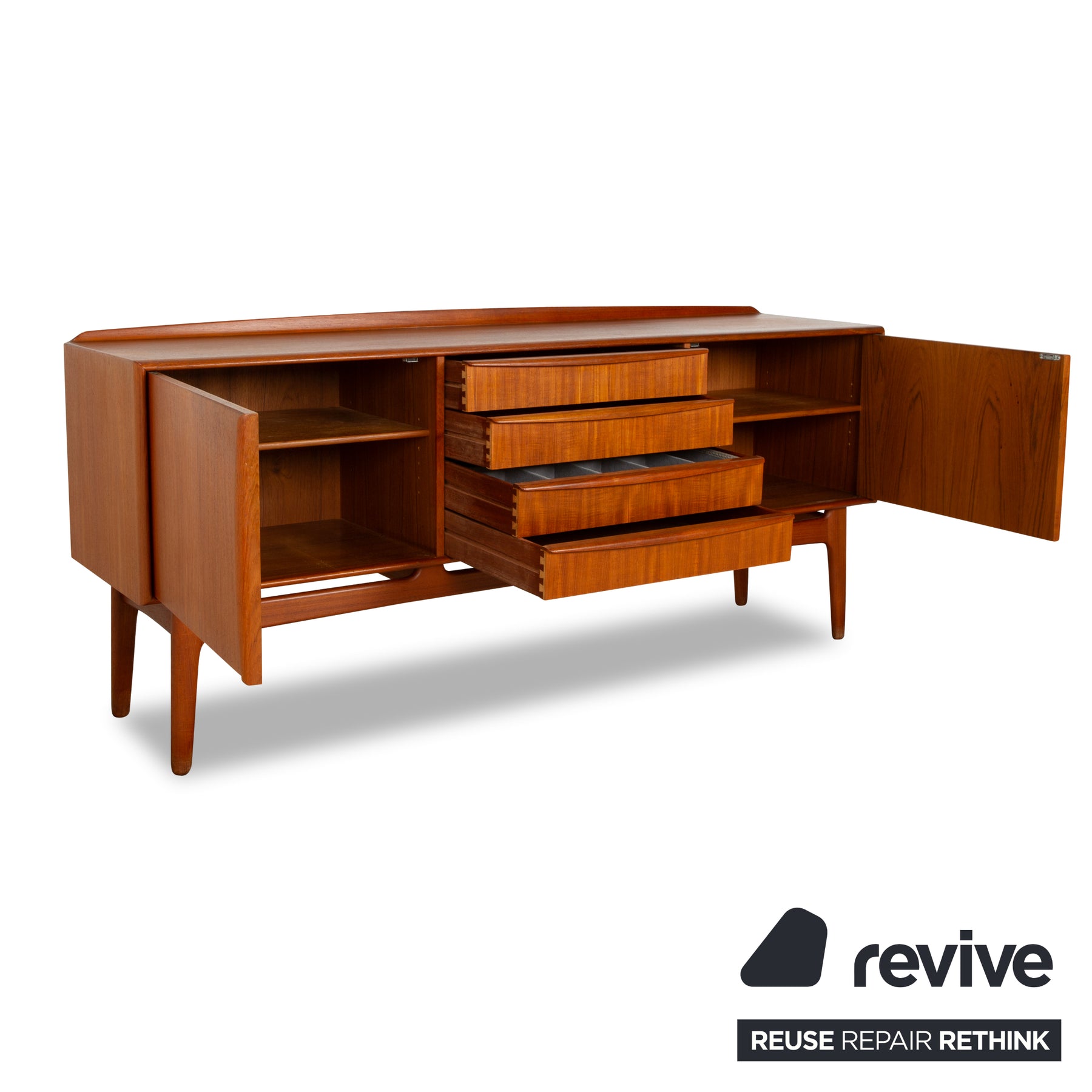 Dieses elegante Sideboard im Mid-Century-Modern-Stil besticht durch sein zeitloses Design und hochwertige Verarbeitung. Gefertigt aus edlem Holz, bietet es eine warme, natürliche Ausstrahlung. Die schlanken, leicht ausgestellten Beine verleihen dem Sideboard eine leichte und schwebende Optik, während die klaren Linien und das minimalistische Design es zu einem vielseitigen Einrichtungsgegenstand machen. Ideal für Wohnzimmer, Esszimmer oder Flur – dieses Sideboard ist sowohl funktional als auch ästhetisch ansprechend.